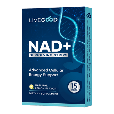 Las tiras disolubles LiveGood NAD+ están diseñadas para ayudar a mantener niveles saludables de NAD+ , para que sus células puedan funcionar de la mejor manera.